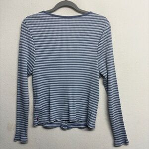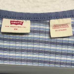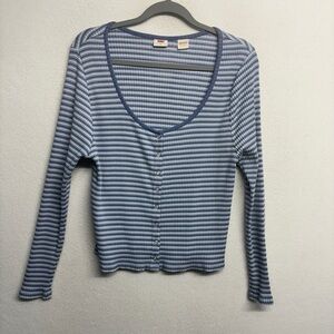Levi's Stripe Snap Front Long Sleeve Shirt Blue 2x Scoop Neck