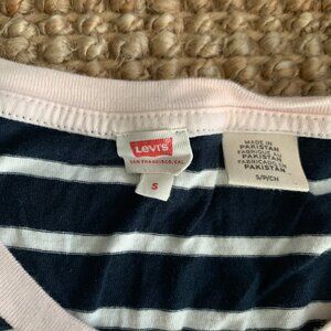 🌿 Navy and white striped Levi's tee with light pink neck trim