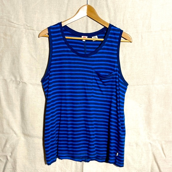 Levi’s striped dark blue/cobalt blue tank top with front pocket