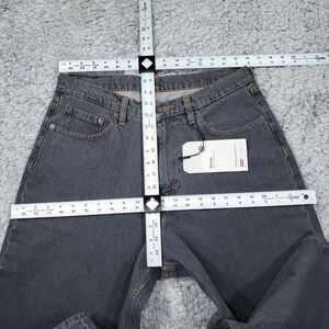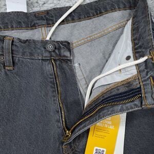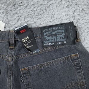 Men's Levi's Skate Super Baggy or Hella Baggy gray jeans in cordura or strong denim. Style number a4298-0001 "Copycat Dark Gray Rinse". New with tags, please note the paper waistband tag is partially detached as shown in photo. Button, zipper, and drawstring closure. Men's size 32 x 34, real measurements shown in photos with jeans laid flat: