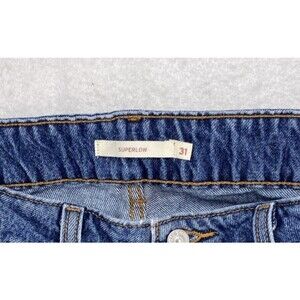 Add a classic and comfortable pair of Levi's to your wardrobe with these Superlow jeans. Featuring a relaxed fit and a timeless blue denim wash, they offer a casual and stylish look for everyday wear.actual measured Waist is 34"