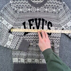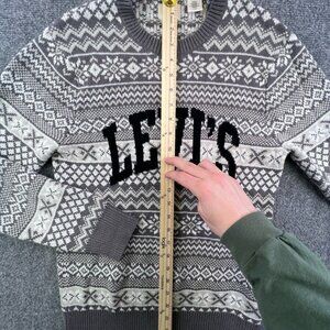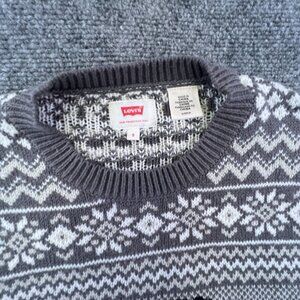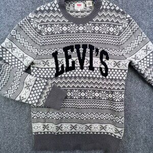 Levi's Sweater Small White Gray Knit Long Sleeve Christmas Fair Isle Cotton Knit