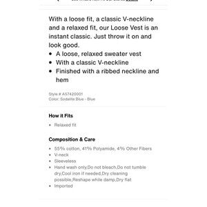 Levi's Sweater Vest Royal Blue Knit Pull Over Mens Medium,Cotton Vneck
