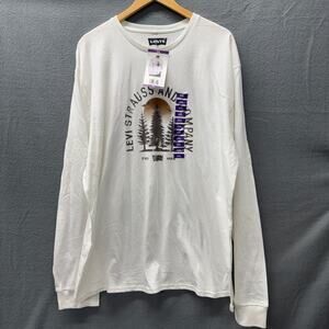 Levi's T-Shirt Mens XXL Long Sleeve Tree Logo White Brown Cotton NEW