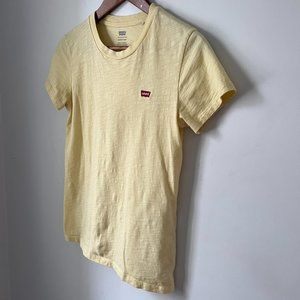 Features: Short sleeve, 100% cotton, perfect crew, Levi's logo, color is yellow, machine washable