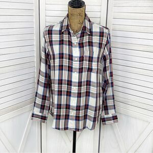 Levi’s Tartan Plaid Boyfriend Fit Button Front Shirt White Red XS
