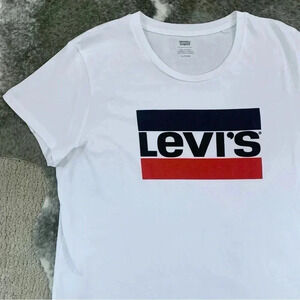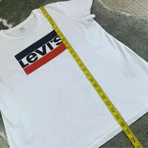 Here’s a classic short sleeve tee by Levi’s in a size XL. Great shape. Love the plain white with the Levi’s logo. Perfect tee for everyday wear. :)