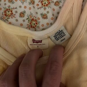 levis tank top • ribbed tank • summer tank top • yellow top women small • tie dye tank top • boho festival top • beach vacation outfit • y2k basics • warm tone top • casual ribbed top