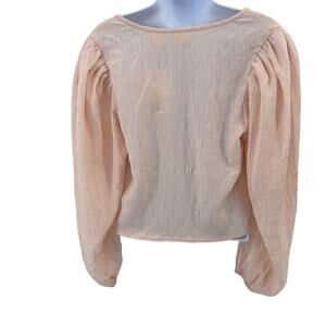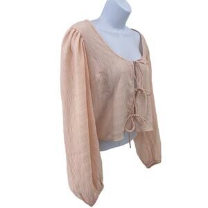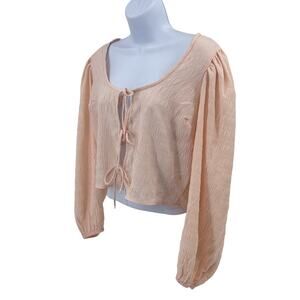 Levi's Tie Front Crop Top Women's M Peach Long Puff Sleeve Cropped Lightweight