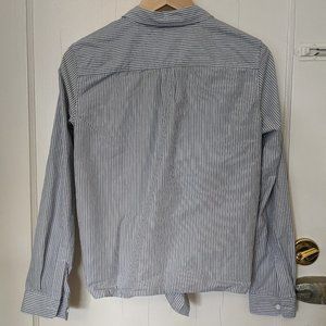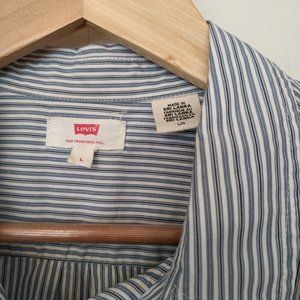 Classic Levi's button down shirt. Tie front style, can also be worn tucked in. Blue white and black stripes. Great condition, no stains or damage. About 21.5" across chest.