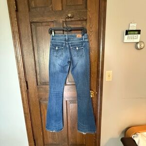 Rarely seen Flap Pocket Flare Too Super Low 524 Classic Levi's. In excellent condition. Medium blue wash.