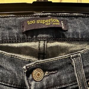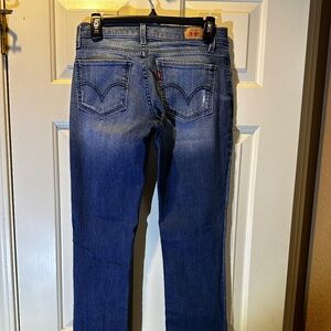Levi's Too Superlow 524 Straight Leg Distressed Jeans Size 7M. Intentionally distressed and faded, especially at ankle. Good condition with plenty of life left in them!