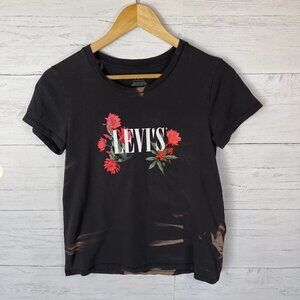 Levis Top SZ XS Black The Perfect Tee Bleached Logo Cactus Flower Short Sleeve
