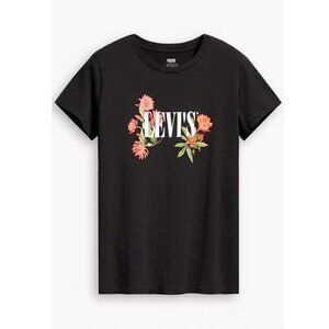 - Levi's The Perfect Tee Black Bleached Logo Cactus Flower Short Sleeve