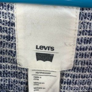 Levis knit sweater top in blue and white with silver metallic threads. Good condition. Size XS. Good condition.