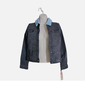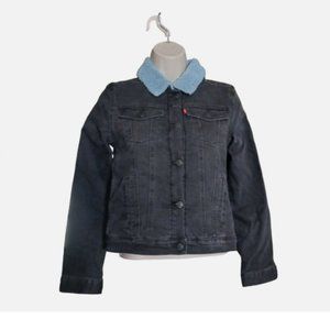 Levi's Trucker Black Jean Denim Jacket Fleece Sherpa Lined Girls 12-13 Size L