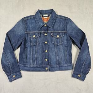 Levi's Trucker Denim Jacket Womens Large Blue Button Front Pockets Dark Wash