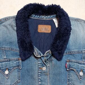 Levi's Trucker Jacket Women's Size 3X Faux Fur Collar Cuffs Quilt Lined Jean