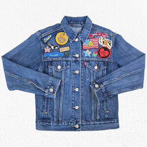 Levi’s Trucker Jean Jacket Patchwork Americana Graphic Statement Denim Size XS