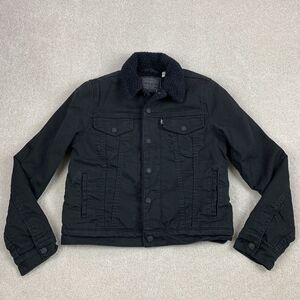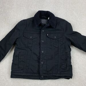 Levis Trucker Lined Denim Jacket Black Sherpa Fleece Women's Size S