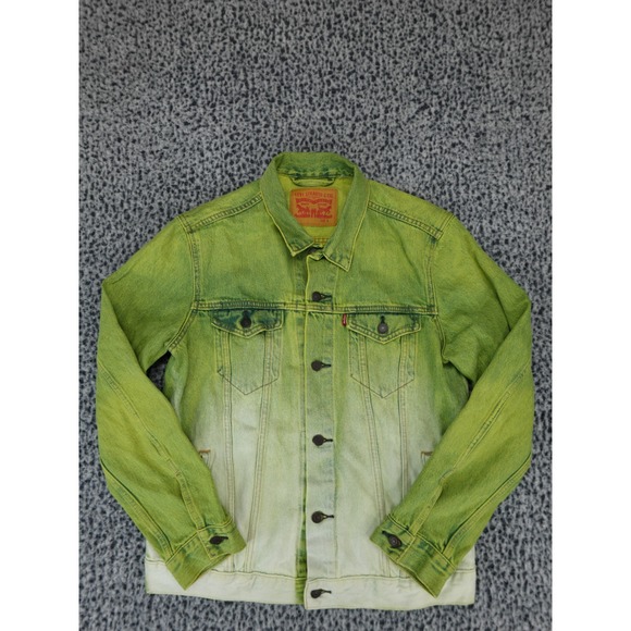 Levi's Type 3 Mens Lime Green Ombre Denim Trucker Jacket Heart Patch Size L