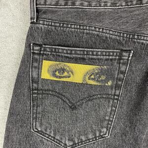 Levis Undercover Jeans Mens 34x32 Black Light Darkness Graphic Eyes Patch Denim