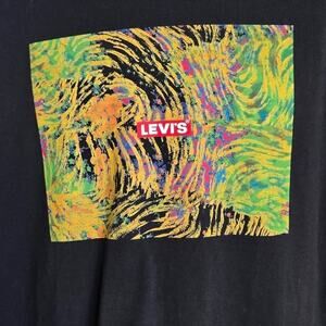 Levis Abstract Print T Shirt Size Medium Relaxed Fit Black Crew Neck 100% Cotton