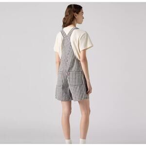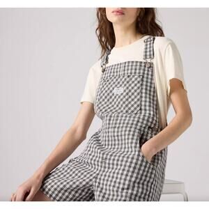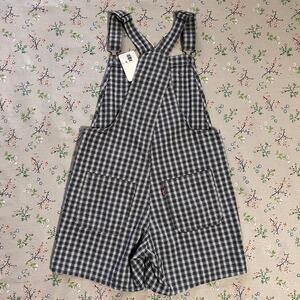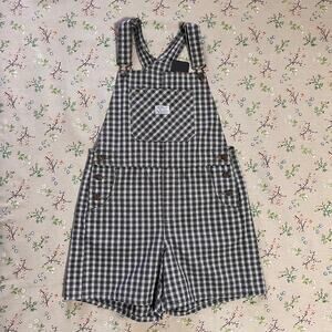 Levi's Utility Shortalls Milo Plaid Brown Overall Short Small Cotton Twill Fall