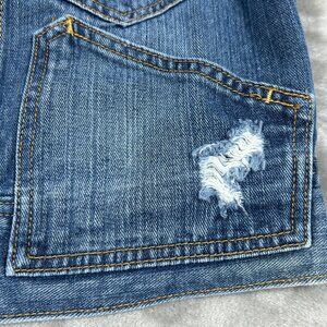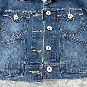 Levi's Vest Women's Large Denim Distressed Frayed 4 Pocket White Buttons VTG