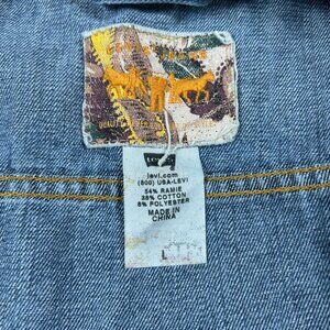 Levi's Vest Women's Large Denim Distressed Frayed 4 Pocket White Buttons Vintage Boho Gypsy Cowgirl Ranchwear Rodeowear