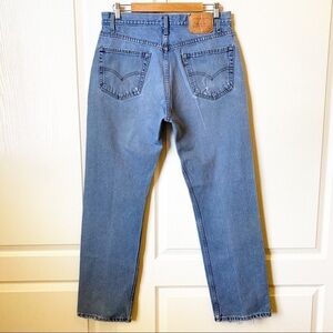 Levi’s Vintage 505 Regular Fit Straight Leg Denim Jeans. True Y2K Levi’s that are naturally faded and distressed. High waisted mom jeans and worn in all the right places. Tag says 34x32 but because they are vintage and shrink to fit, they are actually smaller. In very good preloved condition.