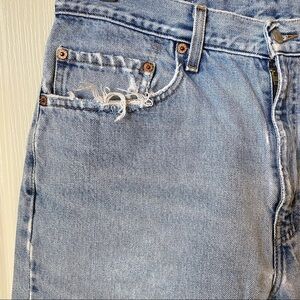Levi’s Vintage 505 Regular Fit Straight Leg Denim Jeans. True Y2K Levi’s that are naturally faded and distressed. High waisted mom jeans and worn in all the right places. Tag says 34x32 but because they are vintage and shrink to fit, they are actually smaller. In very good preloved condition.