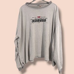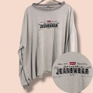 Levi's Vintage "Authentic Jeanswear" Logo Grey Ribbed Oversized Crewneck Sweatshirt.