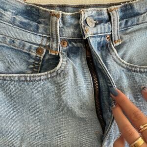- Upcycled from vintage Levi's 550 jeans into shorts