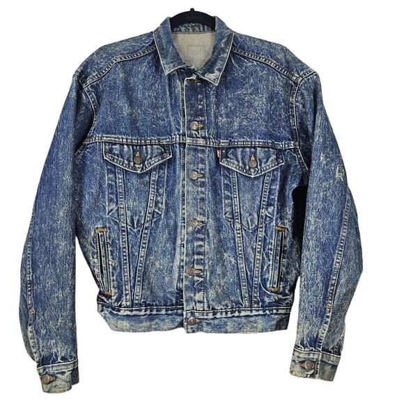 Levis Vintage Jean Jacket USA 1980s Acid Washed Denim Trucker Red Tab Distressed