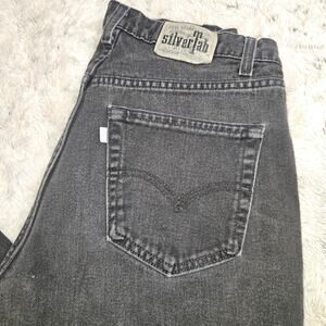Step back in time with these awesome black "SILVERTAB" Levi's jeans! These jeans have a cool, retro vibe that's sure to make a statement. I couldn't find a size tag, but they measure approximately 16 inches across the waist and have a 33-inch inseam. Seriously, these jeans bring back so many memories!