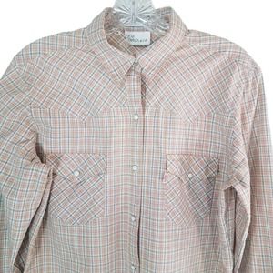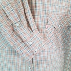 Levis Vintage Womens Size 14 Pearl Snap Plaid Shirt Western Yoke Hong Kong