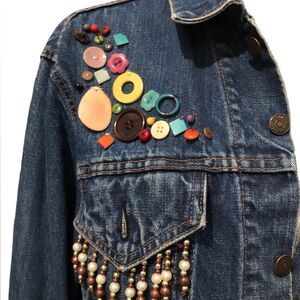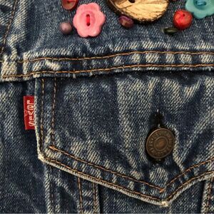 Vintage Levi’s denim jacket with colorful buttons & beads embellishments. Trucker / boyfriend style jacket.