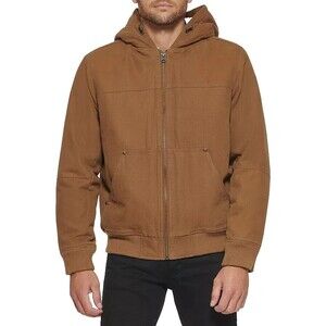 Levi's Washed Cotton Canvas Sherpa Utility Hooded Bomber Brown Jacket XXL NEW