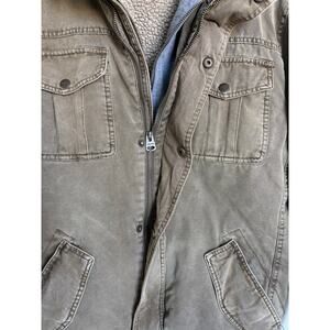 Levis Washed Cotton Hooded Military Jacket Mens M Green Sherpa Lined Distressed