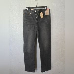 Levis Wedge Straight High Rise Black Button Fly Jeans 30x28