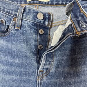 The product is a preowned pair of Levi's Wedgie Button Fly Straight Leg jeans in size 27. These jeans feature a mid-rise, a 27-inch inseam, and a 5-pocket design. Made of a cotton blend material in a classic blue color, they are machine washable and have a distressed look with pockets for added style. The button closure and straight leg style add to the timeless appeal of this wardrobe staple from the Levi's brand.