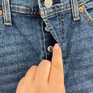 The cheekiest jeans in your closet. Inspired by vintage Levi's jeans. Hugs your waist and hips to showcase your best assets. Made with a classic straight leg. Iconic leather patch at back waist. Snug through the hip and thigh. High rise. Straight leg fit. Button fly. 5-pocket styling. Raw hem. Approx. inseam: 27". 85% cotton/14% polyester/1% spandex.