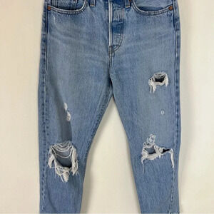Levi's Wedgie Fit Straight Leg Ankle Jeans Distressed Cotton Cropped Light Wash