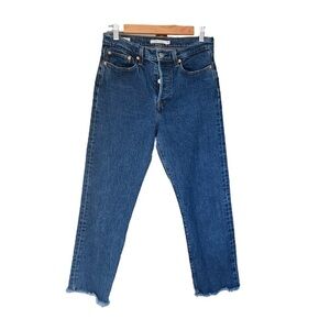 Levi’s - Wedgie High Rise Straight Leg Button Fly Raw Hem Jean Sz 28