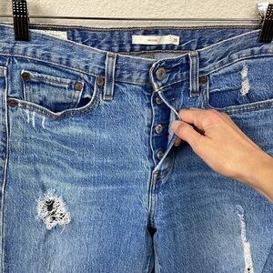 Levis Wedgie Icon Fit in Higher Love High Rise Distressed Button Fly Big E Sz 28
