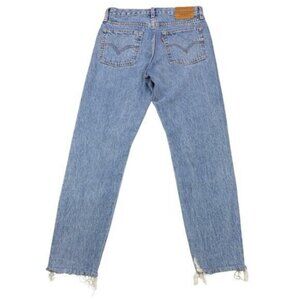 Button fly. 5-pocket styling. Intentionally faded throughout. Intentionally frayed leg opening
