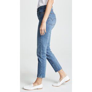 A pair of Levi’s wedgie jeans with a soft, faded wash for an easygoing vibe, as well as a fit that hugs your waist and hips.