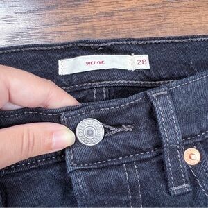Levi’s • Wedgie Icon jean Black Desert distressed raw hem ripped knee slim