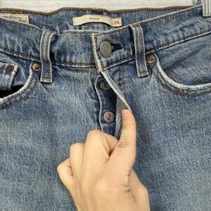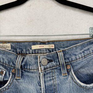 Levis Wedgie Jeans Womens 26 Blue High Rise Button Fly Straight Denim Distressed